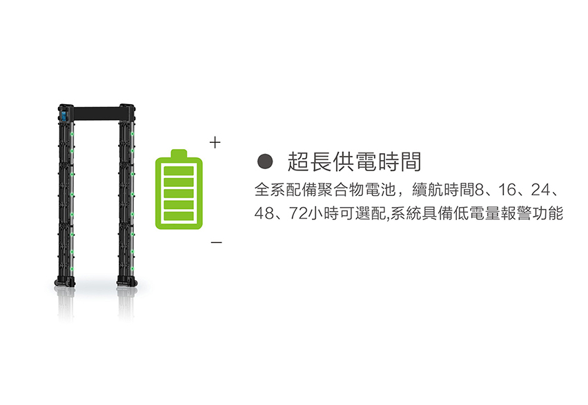 HC-TY800便攜式金屬探測門(折疊式)采用電子頻率芯片,內置高亮的區位led燈顯示,由abs、聚碳酸酯合金材料等抗沖擊力強材料制作而成,液晶顯示調節、靈敏度可調300個級別,內置雙電池左右各一個、電池可續航30小時以上,可選配續航80小時,由6塊傳感區域可以左右上下任意互換裝配,不分左右、不分上下、任意組裝、自動調節、非專業人士 5分鐘即可完成裝配。